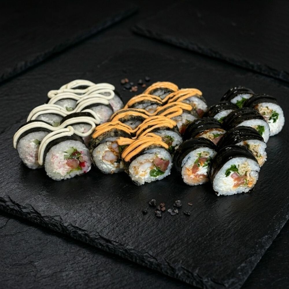 КимБап с курочкой, КимБап с лососем, КимБап жареный с креветкой