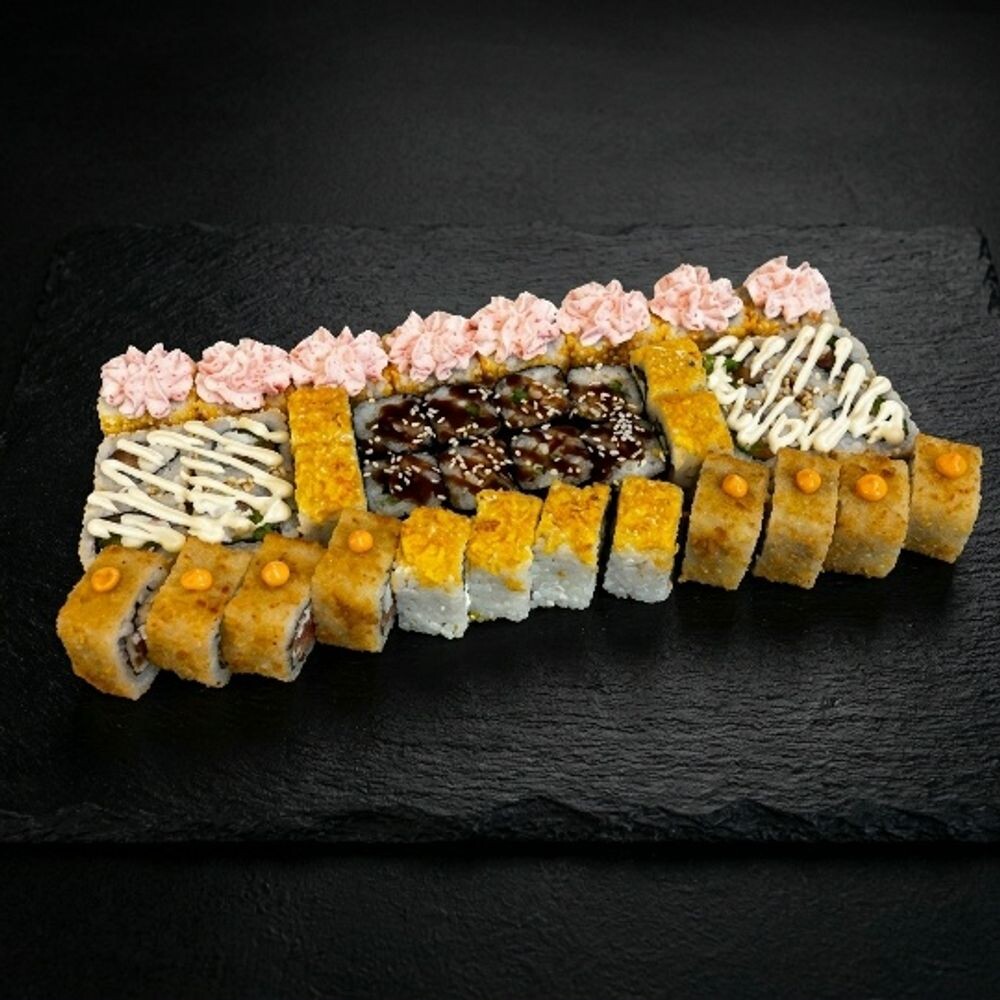 Цезарь, чипс ролл, лава крабс, Ролл с лососем, Темпо чикен🌶 40 шт.