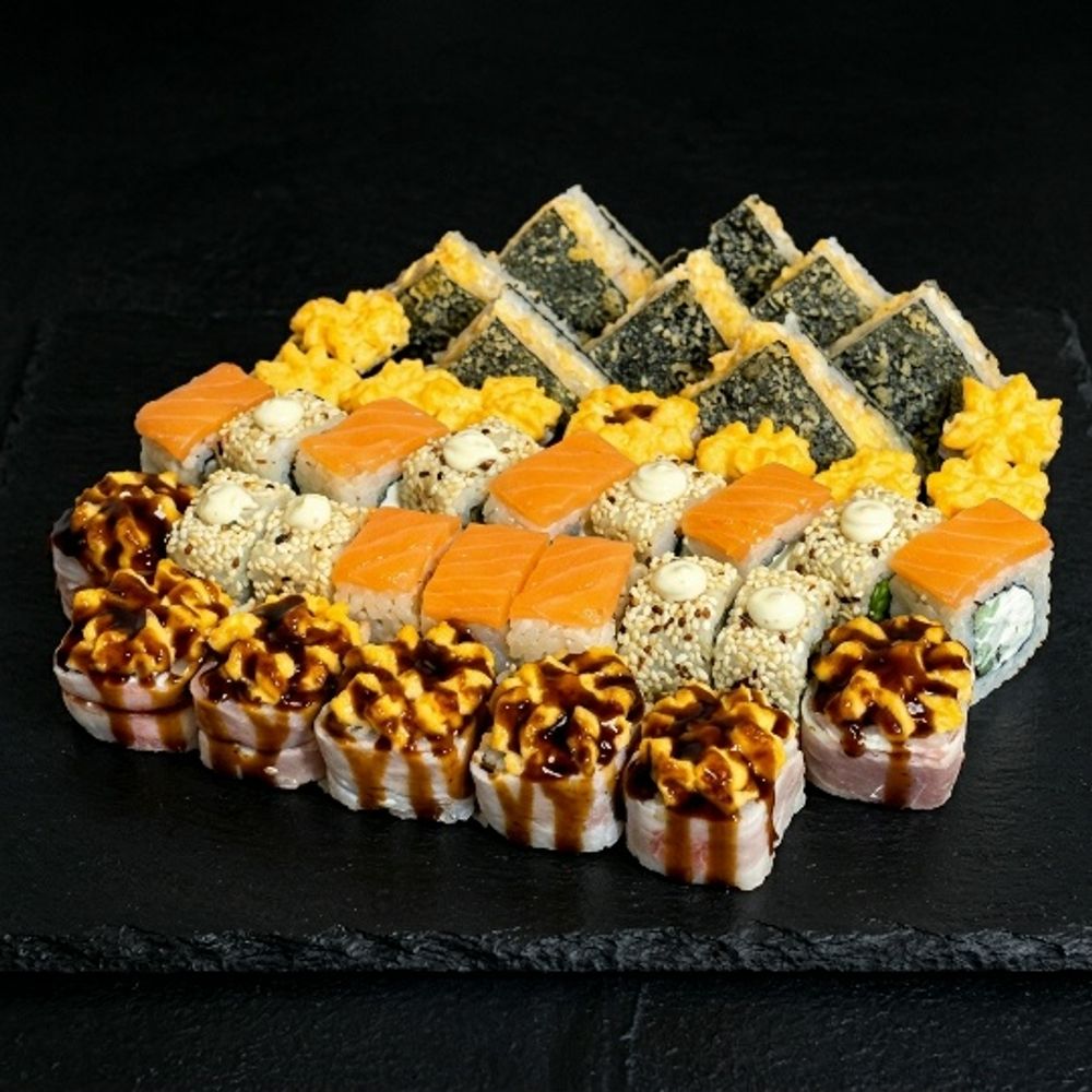 Филадельфия, бекон гриль, мини запеченный с тамаго, цезарь, сэндвич с курицей, 40 шт.