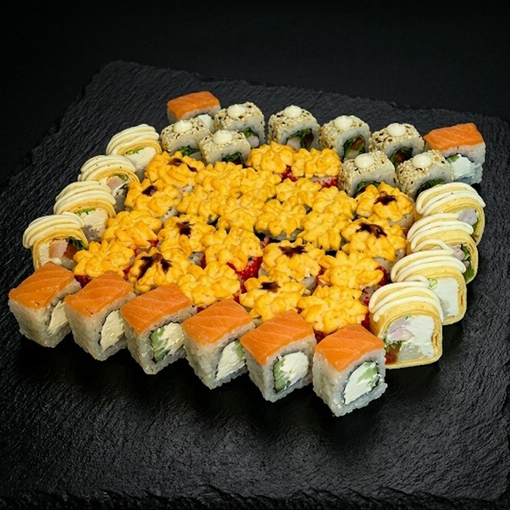 Филадельфия, цезарь, тортилья с курицей, бекон гриль, мини запеченный с тамаго, калифорния гриль, 48 шт.