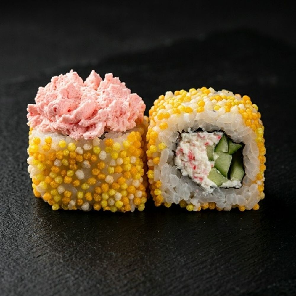 Нори, рис, крабовое сурими, огурец, соус лава, рисовые шарики